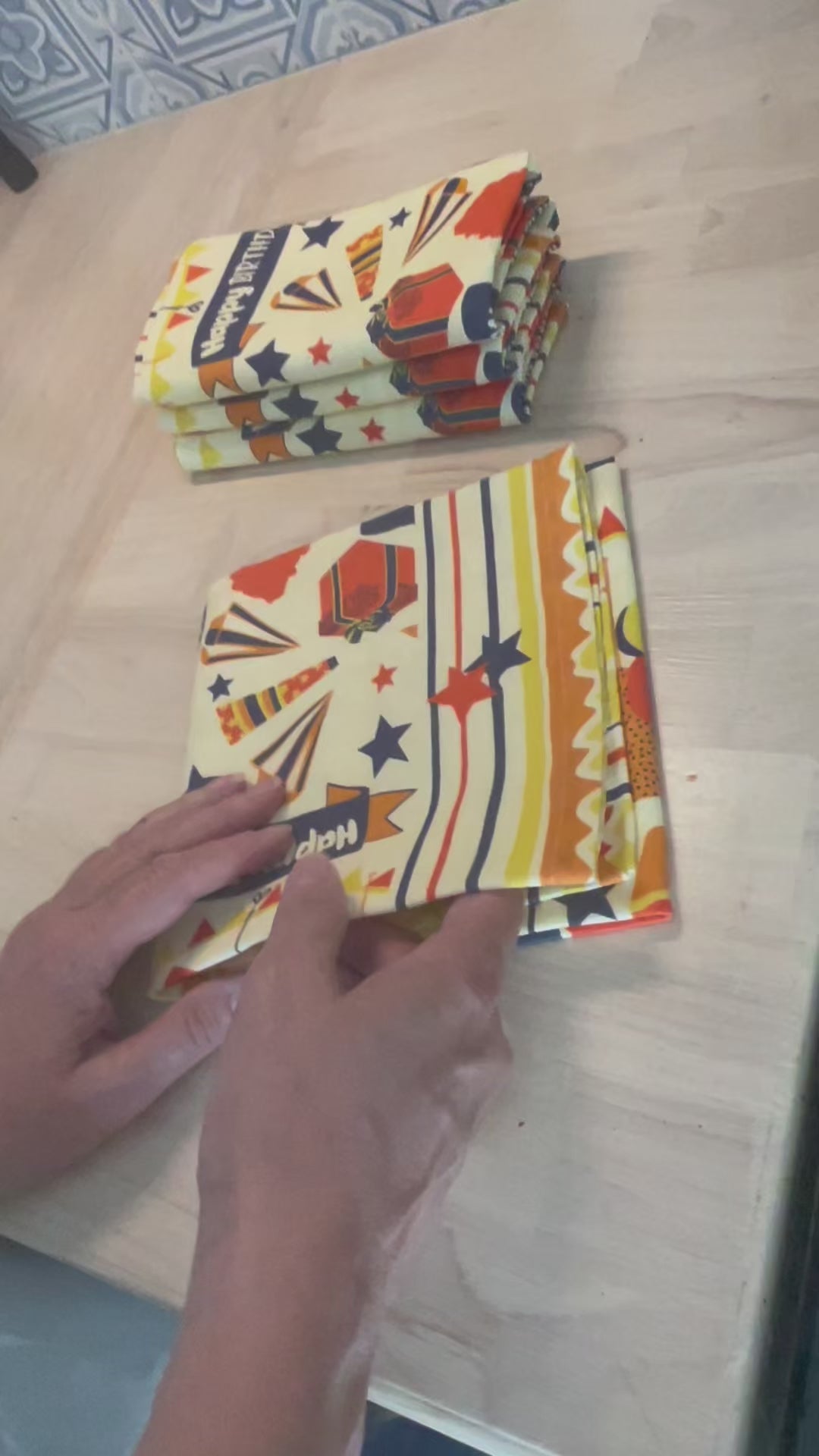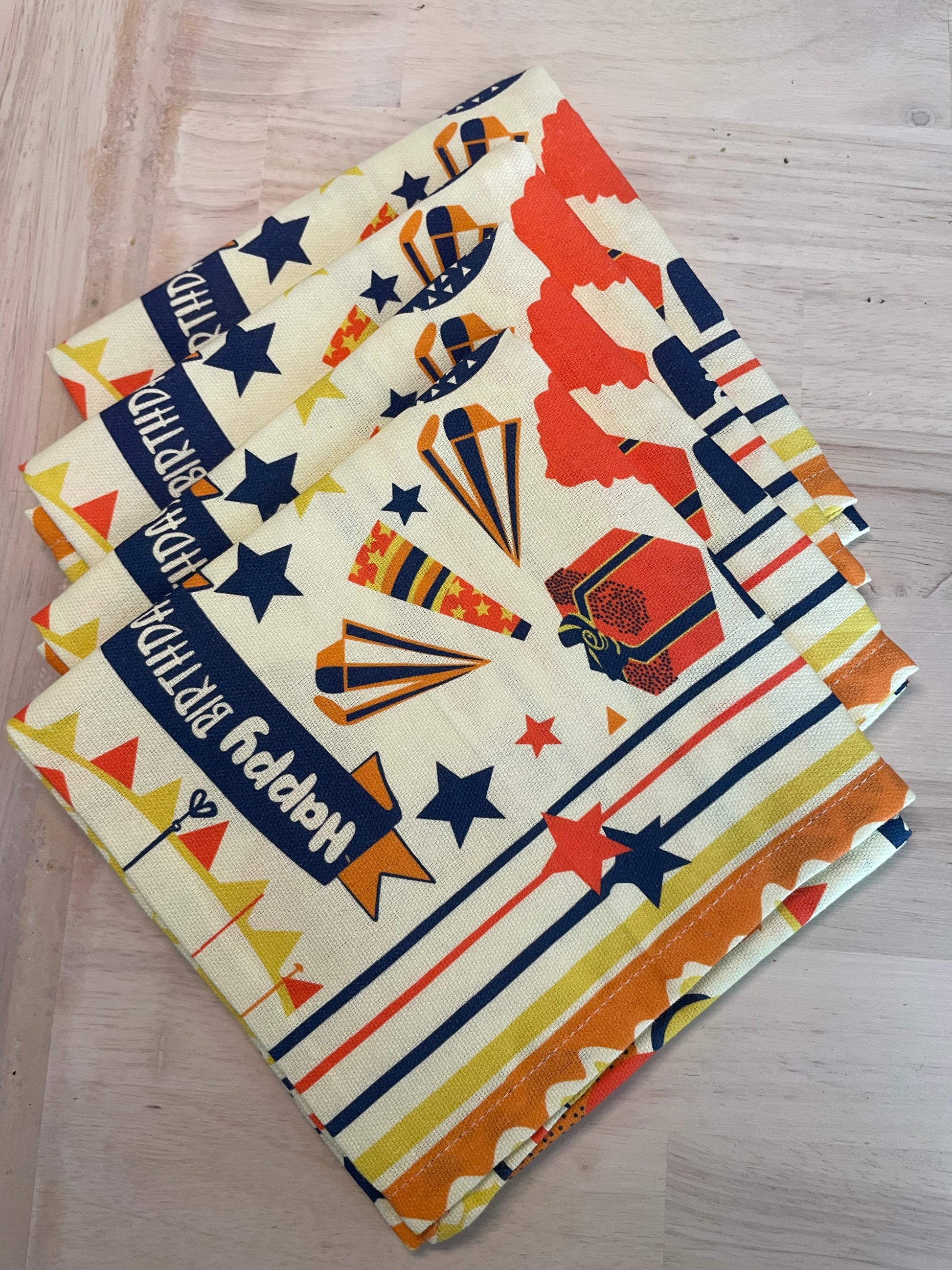 Celebrate with the best! Set your birthday person's table luxury! This high quality, creamy yellow background,100% cotton napkin set says that you treasure the birthday person. Gender neutral design and colors with a grownup design make it perfect for anyone on your birthday list! Be Eco-Friendly, Save time and money while starting a tradition of birthday celebration. Sold in sets of 4